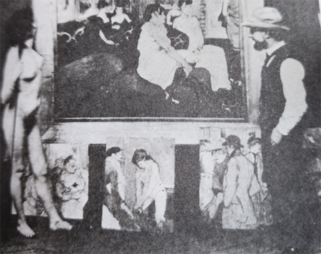 로트랙은 동적, 유기적인 면에서도 인공적인 것에 관심을 가졌으며 이는 반대로 정적, 무기적, 자연적인 것들은 그에게 무관심한 부분이었다. 로트랙에게 있어 풍경이란 인물이 풍경의 의미를 지녔다고 볼 수 있다. 그래서 동시대의 인상파 화가들이 주장하고 제창한 외광화는 본질적으로 그에게 맞지 않았다. 로트랙이 추구한 것은 인상파 화가들처럼 빛나는 태양과 그 아래에서 시시각각 변해가는 자연의 모습이 아니 카페나 극장의 스포트라이트나 가스등의 불빛 아래 희미하게 떠오르는 사람들의 이미지였다. 그래서 로트랙은 후에 그에게 흥미 있는 것은 오직 인간뿐이라는 말하곤 했다. 그래서 같은 [물랑 드 라 갈레트에서]의 주제를 놓고, 르누아르는 밝고 건강한 비전의 그림을 그렸지만, 로트랙은 시대 분위기를 반영하여 인지 강한 색으로 운동감과 속도가 있는 선을 사용하여 세기말적인 그늘과 난숙한 분위기를 그이 그림에 표현하였다.